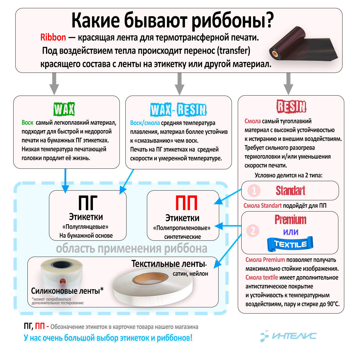 Риббоны быват 3х видов выборбор зависит от материала этикеток.
